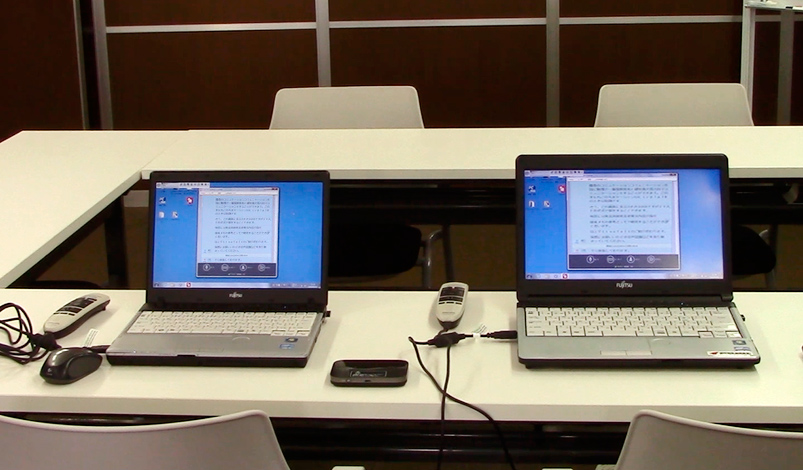 「LiveTalk」の仕組みは非常にシンプルで、各端末をつなぐ架け橋といったところだろうか。その仕組みから、発言者ごとに独立したパソコン(「LiveTalk」と「AmiVoice SP2」がインストールされたもの)とマイクを用意する必要がある。動作環境を満たせばタブレットも使用できるが、「LiveTalk」と「AmiVoice SP2」を同時に立ち上げて使用するので、端末には一定のスペックが要求される。